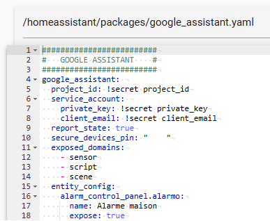 je passe par l’intégration google assistant et j’ai mon entité alarme qui remonte bien dans google home. Sinon, on peut utiliser des scripts qui remontent sur GH aussi.