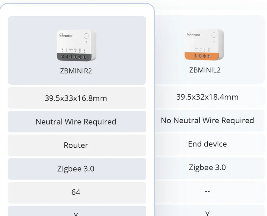 Le module SONOFF ZBMINI L2 est 40 % plus petit que que son prédécesseur, le ZBMINIL. Ainsi il prend beaucoup moins de place dans la boîte d’encastrement, ce qui facilite le câblage. Bien que le ZBMINI L2 soit plus petit, il a de nombreuses fonctions, aucun fil de neutre n’est requis, contrôle bidirectionnel, minuterie/scène intelligente, et supporte deux types d’interrupteur mural (à bascule ou bouton poussoir).