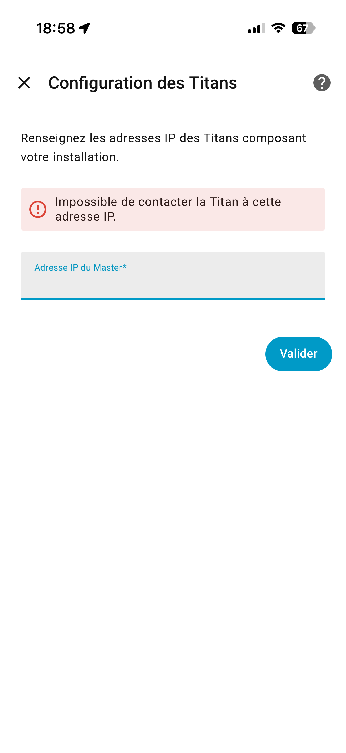 Finalement, j’ai trouvé lP en cliquant sur l’icône wifi dans la page de configuration du Titan même… en plus que c’est une des adresses essayée au début. Par contre cette fois-ci, l’adresse a été acceptée et j’ai pu compléter la configuration. Donc, merci et chapeau…