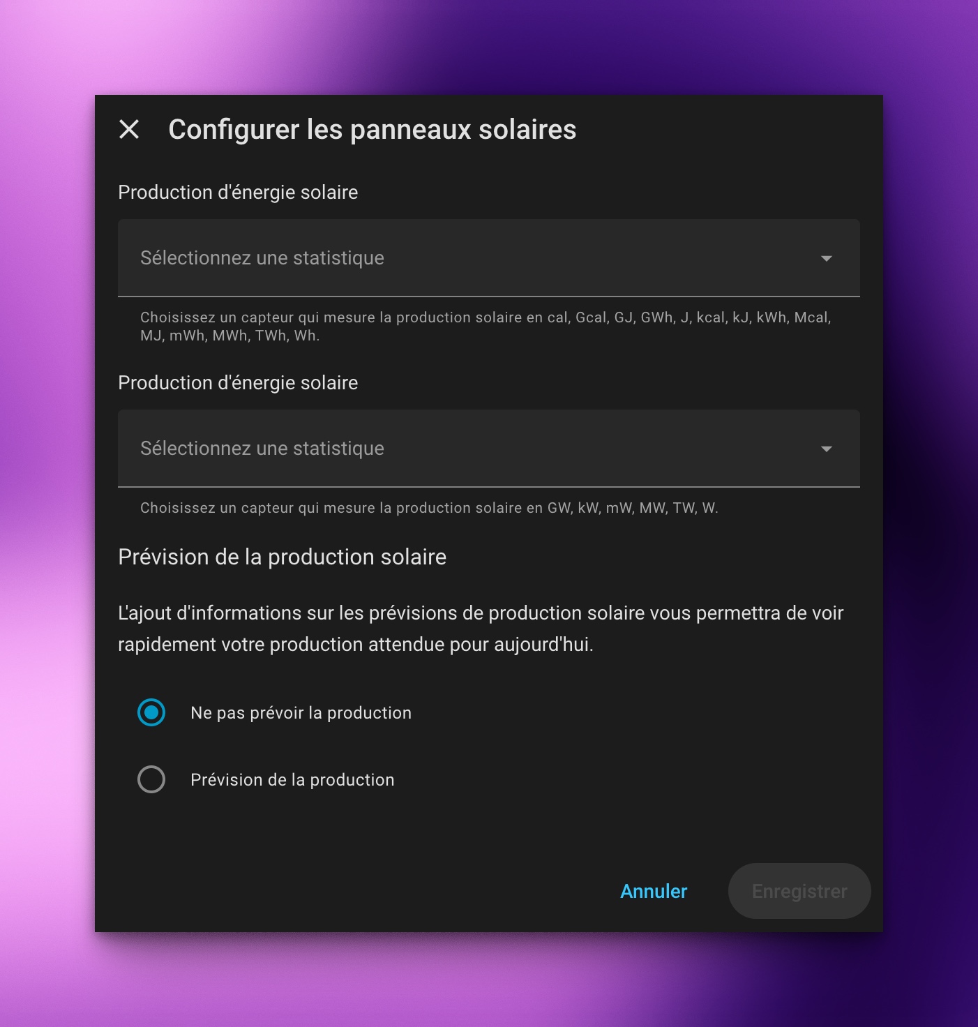 J’ai juste un onduleur et 2 panneaux solaires. J’ai du mal à avoir des données correctes. Que dois-je ajouter comme statistiques ?