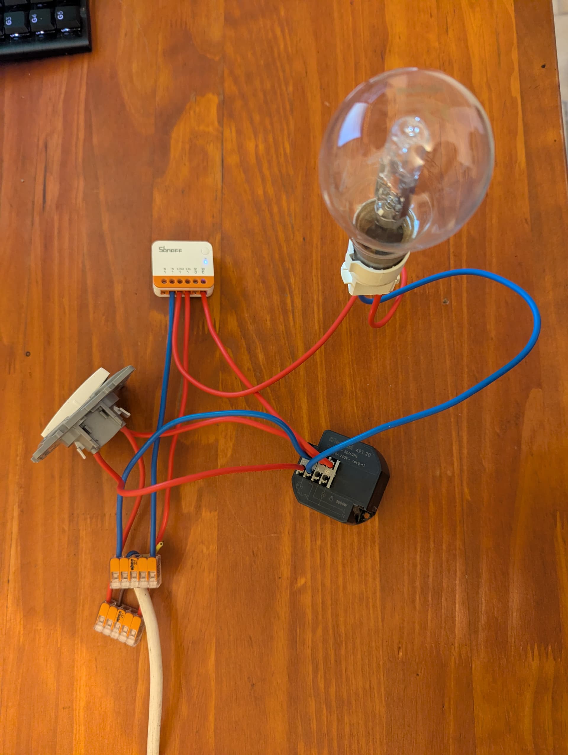 Je peux aussi bien allumer depuis le bouton que depuis HA ou éteindre depuis l’un ou l’autre et avec un seul appui sur le poussoir.