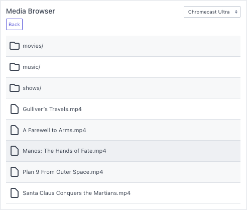 une composition de cartes basiques (une carte média, une liste de fichiers, quelques boutons pour le volume par exemple), sans se préoccuper de la composition pour l’instant