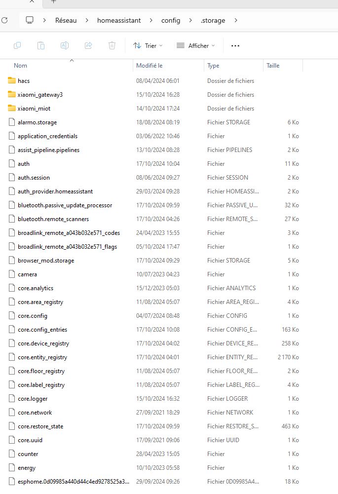 C’est stocker dans des fichiers du dossier .storage qui est un fichier caché. Il faut éviter d’y toucher à ces fichiers. Puis c’est au format JSON et pas en YAML dans ces fichiers.