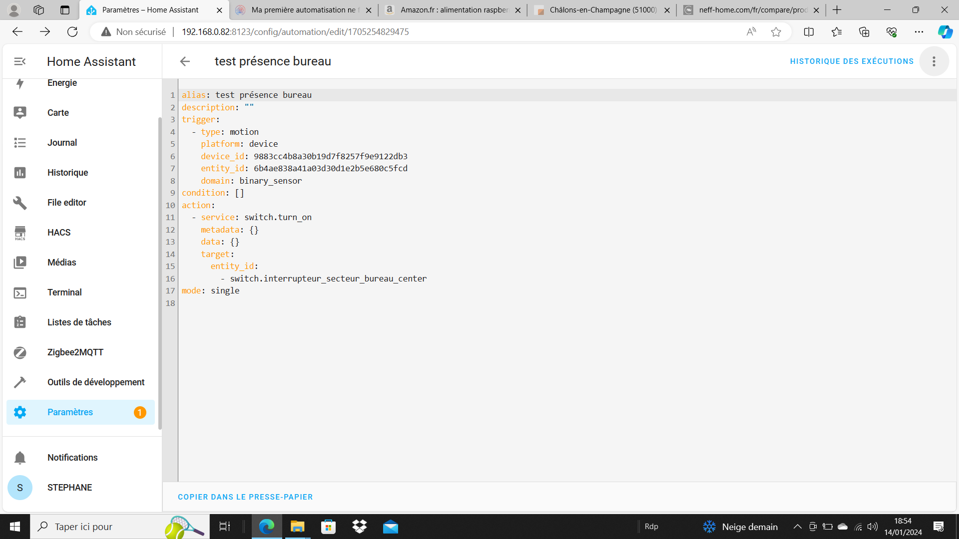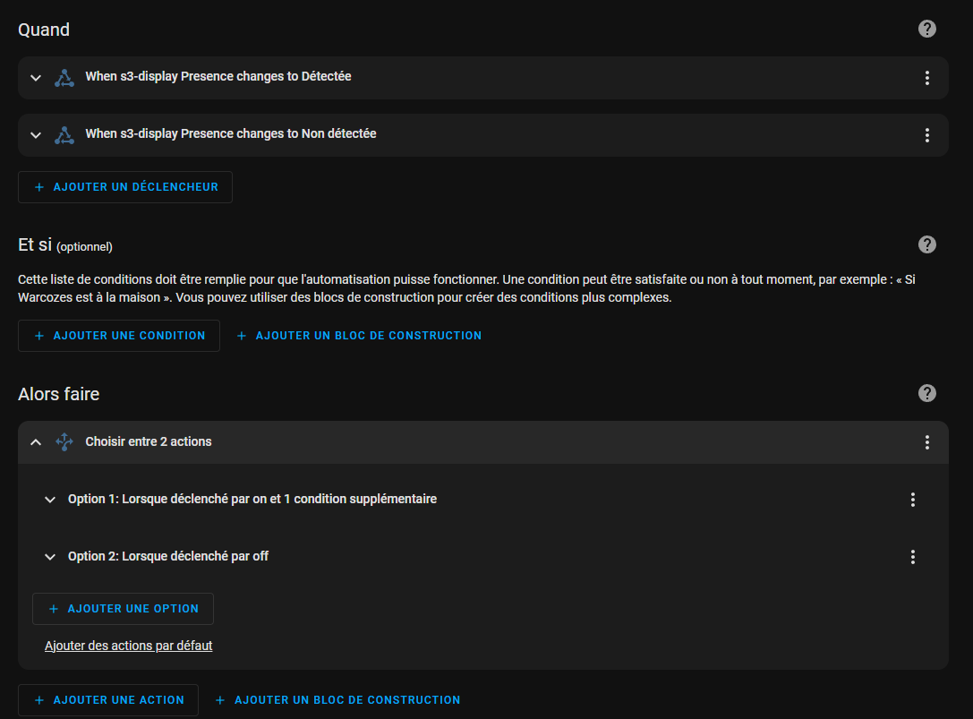 voici ton automatisation, qui allume l’interrupteur quand tu est présent et l’éteins quand tu n’est plus présent.