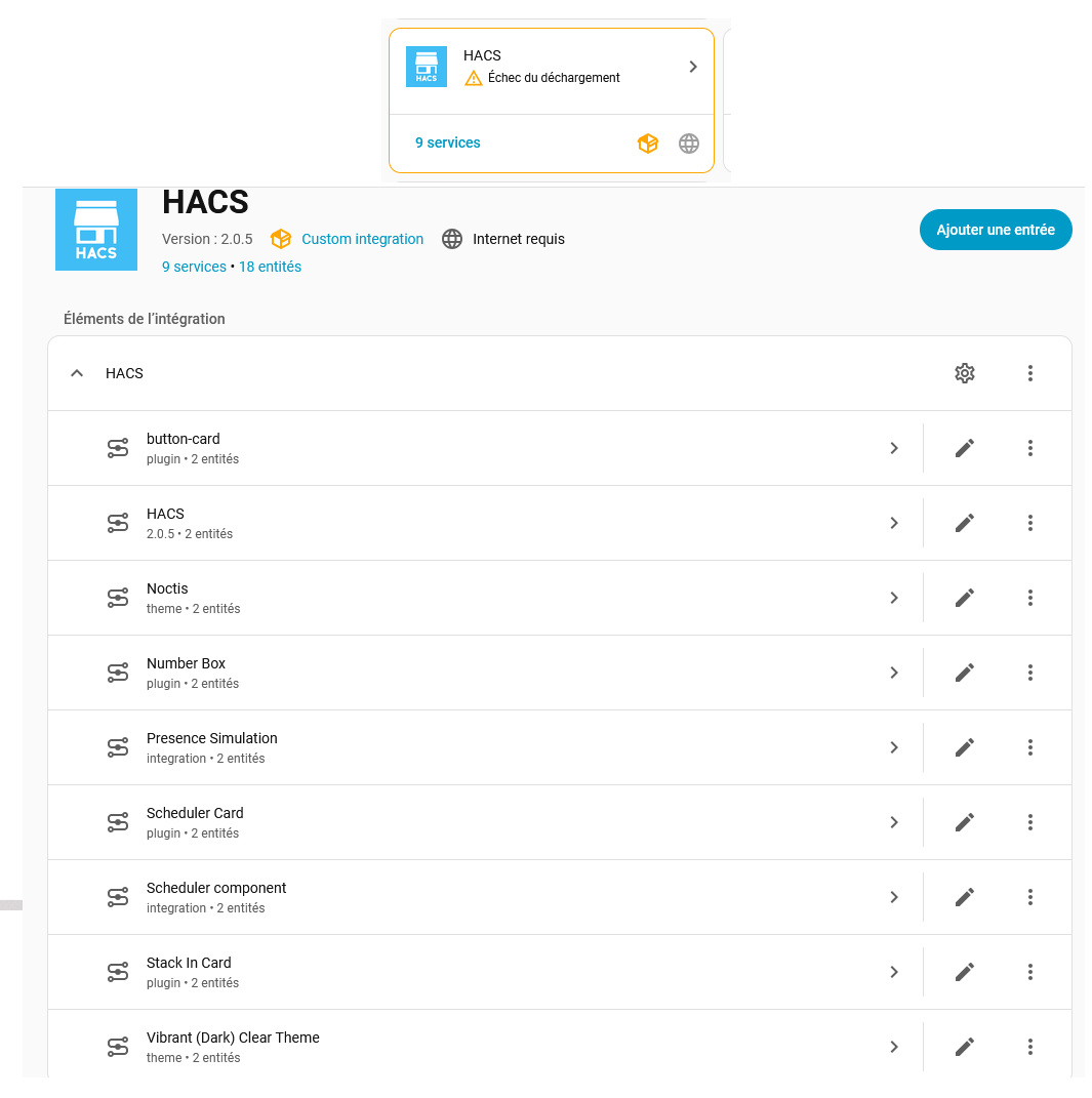 Primo, HACS ne se mettait plus à jour. Aucun dépôt n’apparaissait dans HACS.