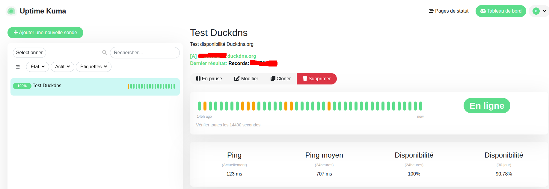 Sur les conseil de @ddfdom j’ai installé uptime kurma sur mon proxmox de test pour monitorer le canard