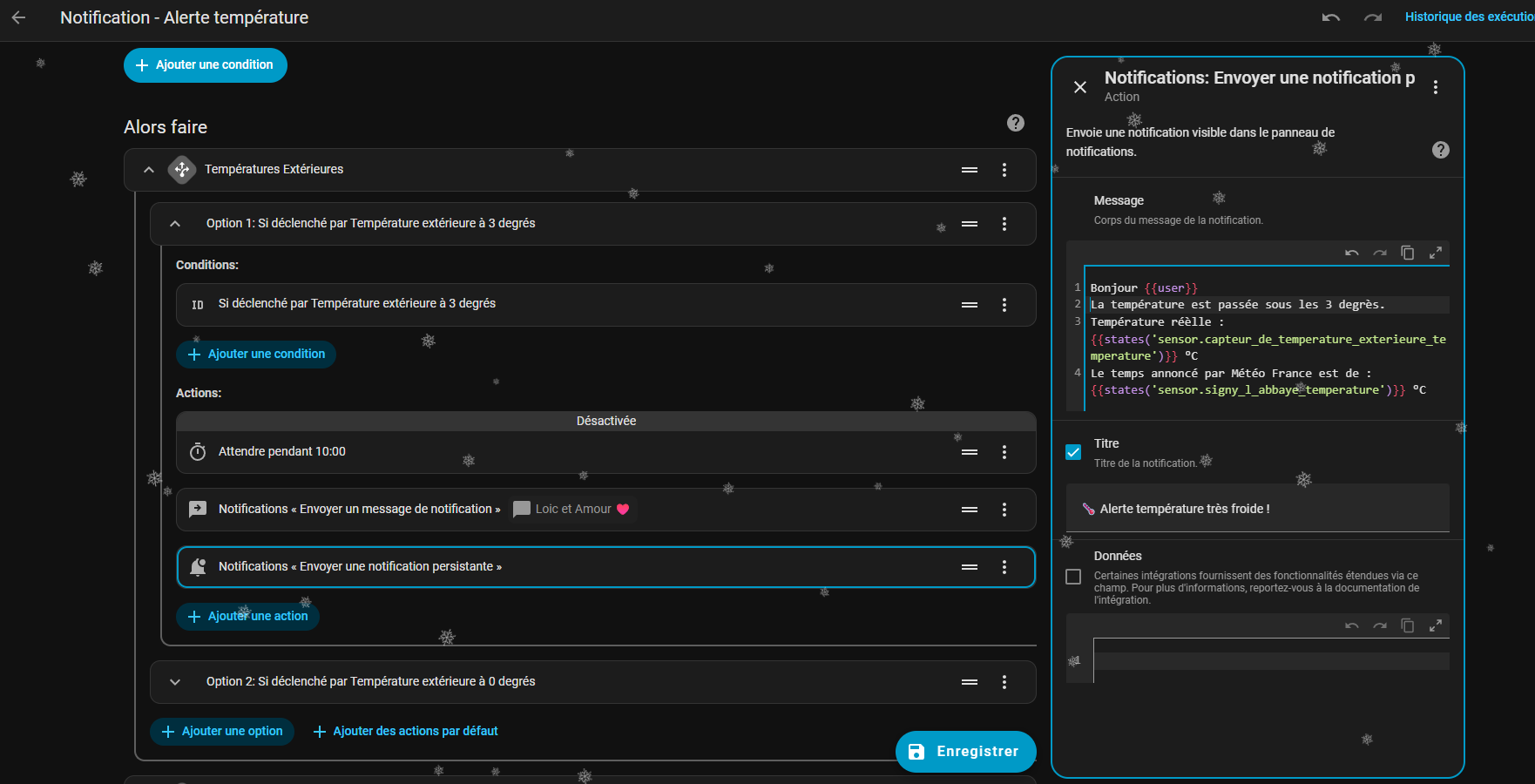 Voici le code que j’ai mis pour recevoir le message sur telephone via l’application HA: