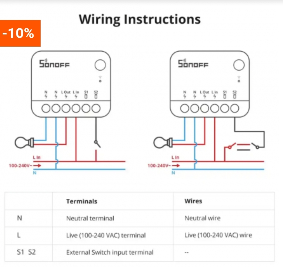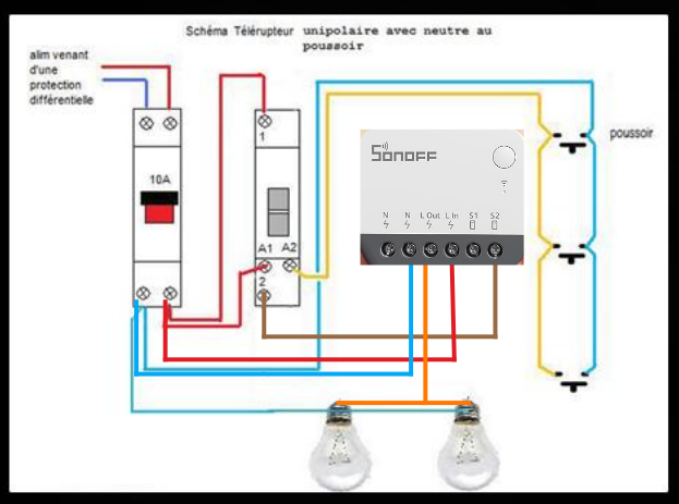 Le cablage est issu du schéma de la documentation sonoff.