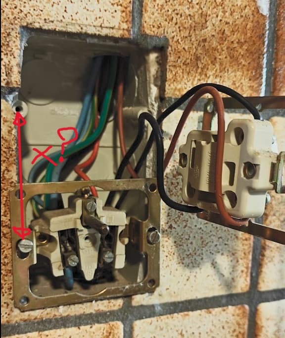 Et donc l’entraxe des vis de ta boite esistante est de ? Je parle de l’entraxe vertical entre l’inter et la prise