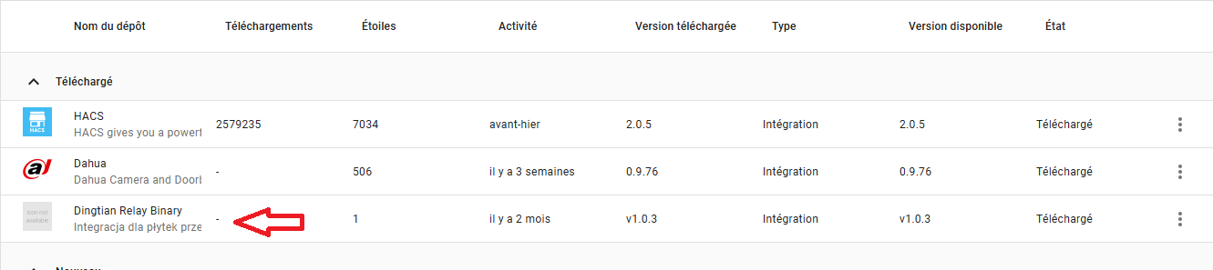La carte relais dingtian à bien été prise en compte dans HACS,