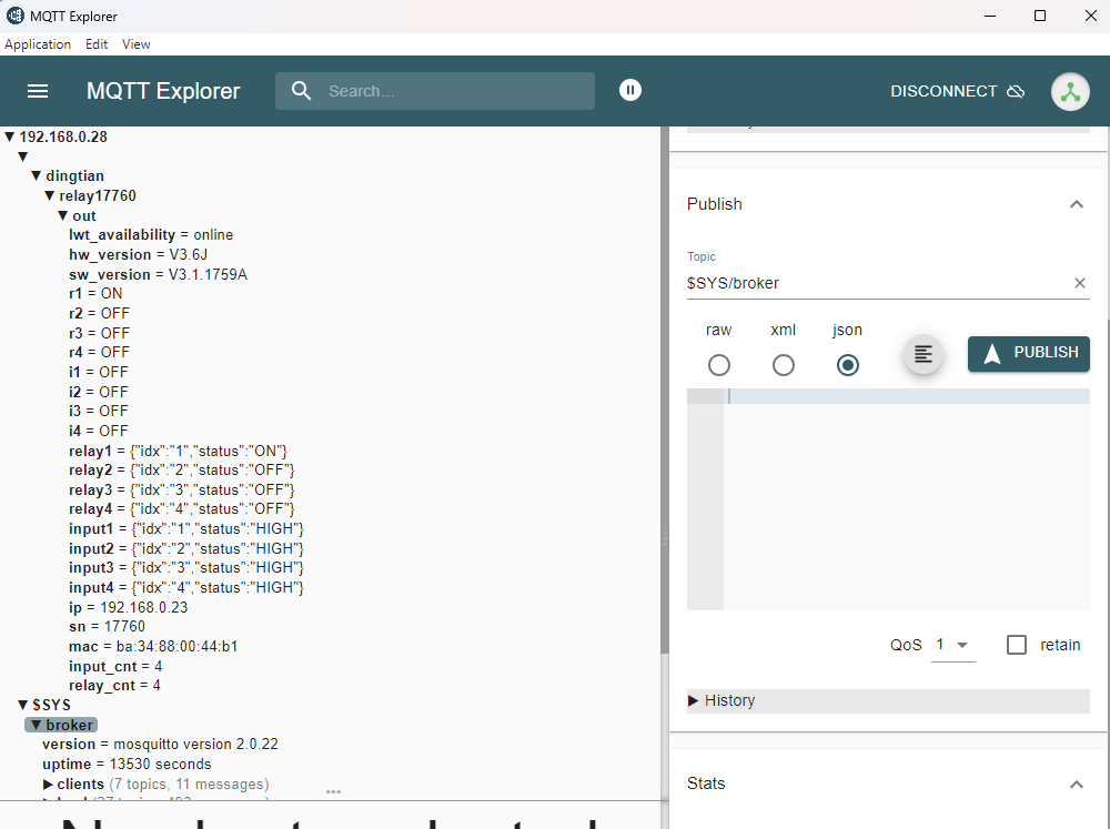Étape 3 : Configurez le broker MQTT pour la carte relais et installez « MQTT Explorer » pour vérifier que la connexion entre la carte relais et « mosquitto » est correcte.