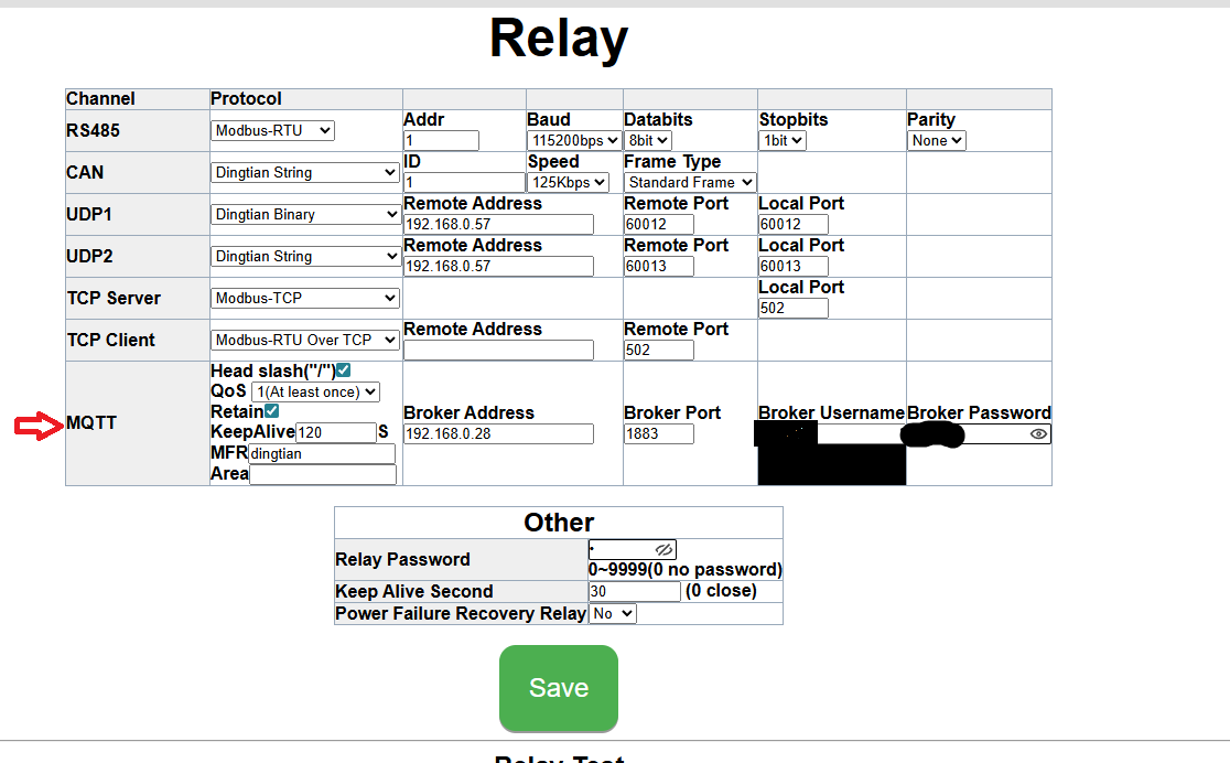 Les cartes sont reliées sur mon réseau Ethernet avec une IP fixe, d’après se que j’ai compris il faut paramétrer la carte Dingtian le MQTT se que j’ai déjà fait? voir image ci dessous.
