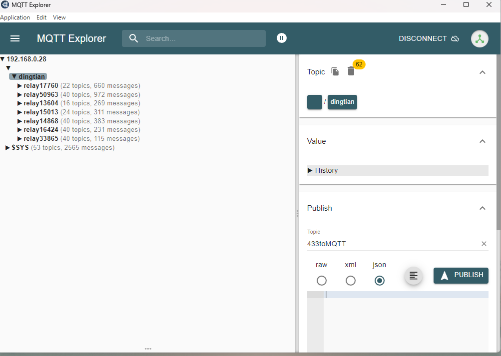 /dingtian/relay100/out/relay1~8 {"idx":"1","status":"OFF"}