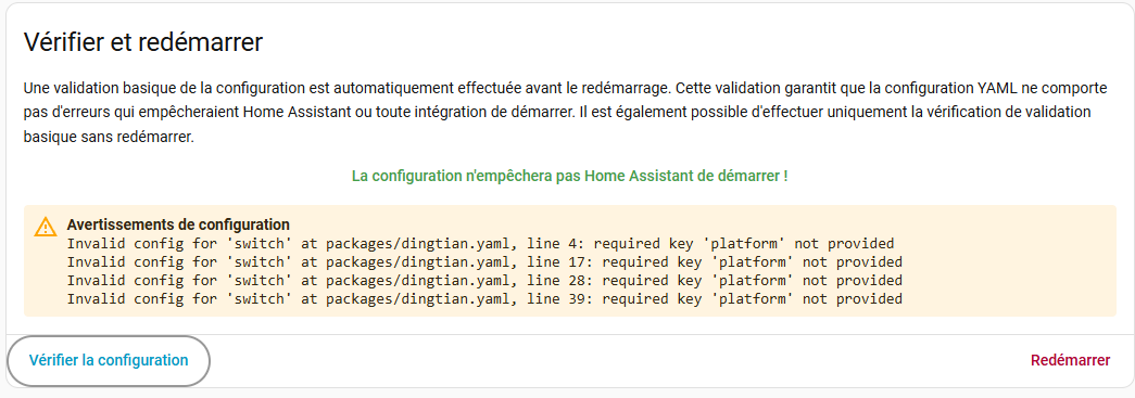 J’ai renommé le dossier packages, j’ai redémarré HA ? même problème.