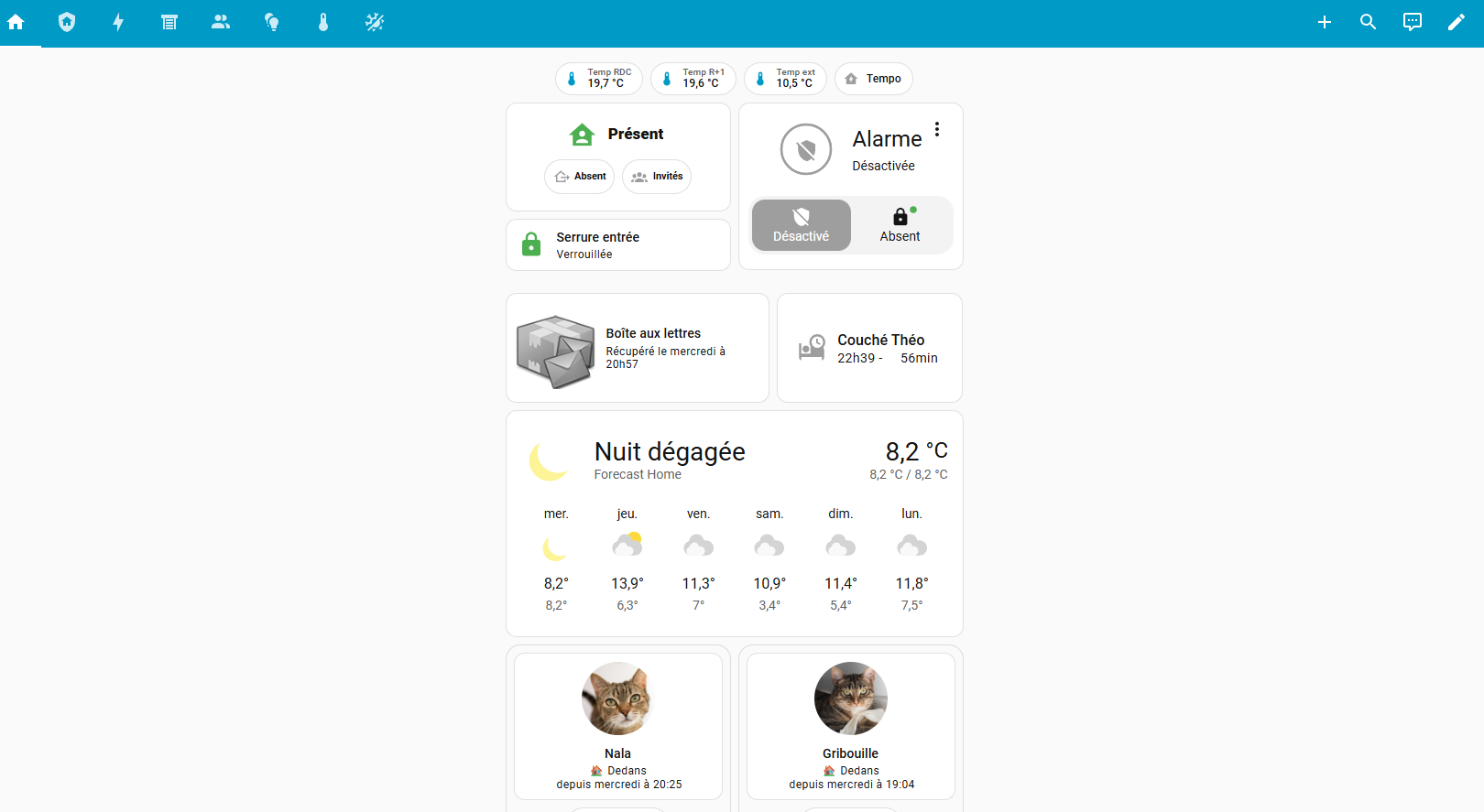Côté “socle”, ça avance bien : j’ai réussi à intégrer l’ensemble de mes devices / intégrations (Zigbee, MQTT, Tado, Nuki, Google Cast, Google Cloud TTS, caméras, etc.). J’ai aussi appliqué une convention de nommage cohérente sur mes devices/entités (pièce/zone + device + fonction), ce qui aide déjà beaucoup à y voir clair.