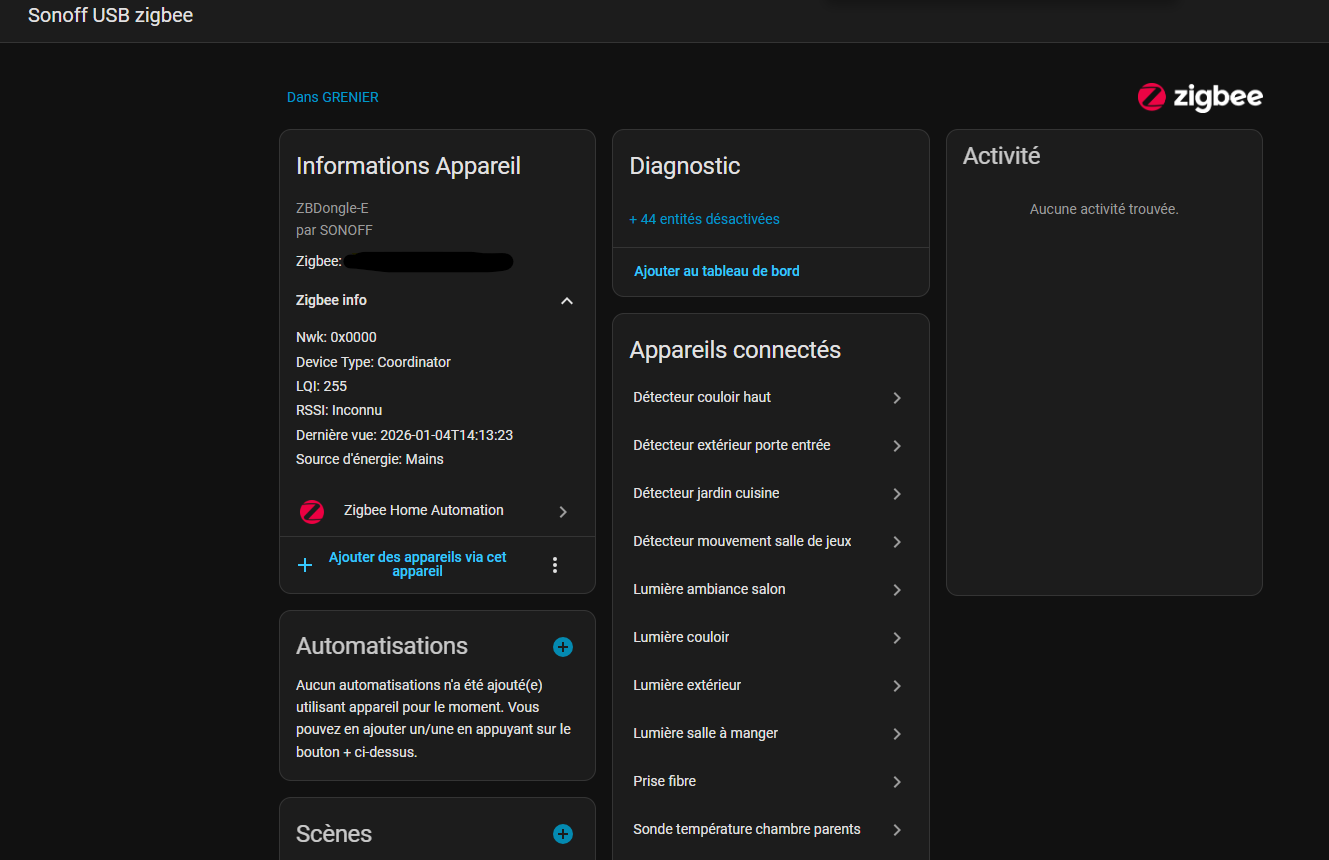 Je ne pense pas avoir un problème de maillage, car j’ai pas mal de modules Zigbee à proximité, mais je ne peux pas l’affirmer à 100%.
