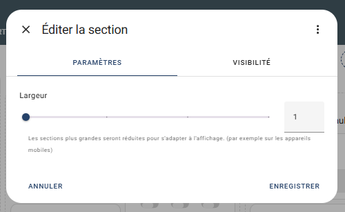 Une question toute bête de débutant : Comment modifier la largeur d’une section sur une configuration de la vue en section ? J’ai cherché longtemps mais je n’ai pas trouvé.