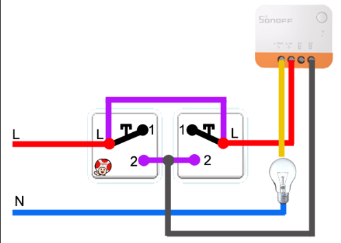 J’ai testé le schéma de câblage quand j’allume la lumière d’un côté, il m’est impossible de la contrôler depuis l’autre interrupteur. De plus, je n’arrive pas à configurer le module Sonoff ZBMINI R2 en mode poussoir depuis Home Assistant.
