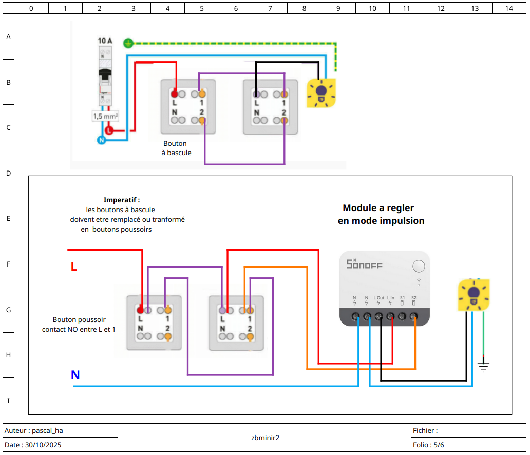 perso j ai des zbminir2 pour mes eclairage tout est brancher dans le grenier dans les boites de deriv et pour seulement allumer et eteindre j ai garder mes inter sans basculer sur des poussoirs avec ce branchement .