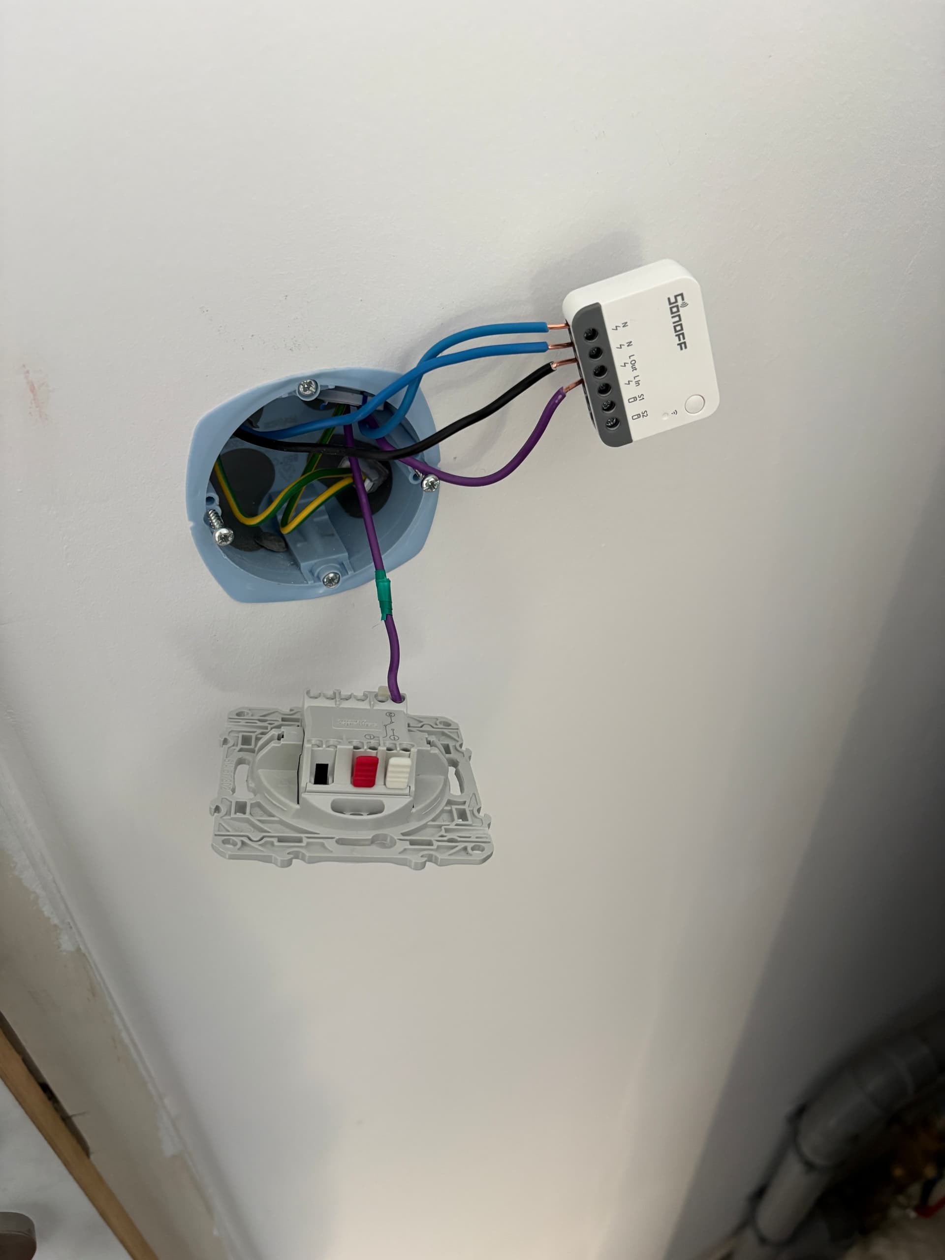 Il faut les câbler sur la bonne borne de l’inter sinon c’est inversé, les mettre en parallèle, mettre le trigger sonoff sur Pulse, et câbler comme ça :