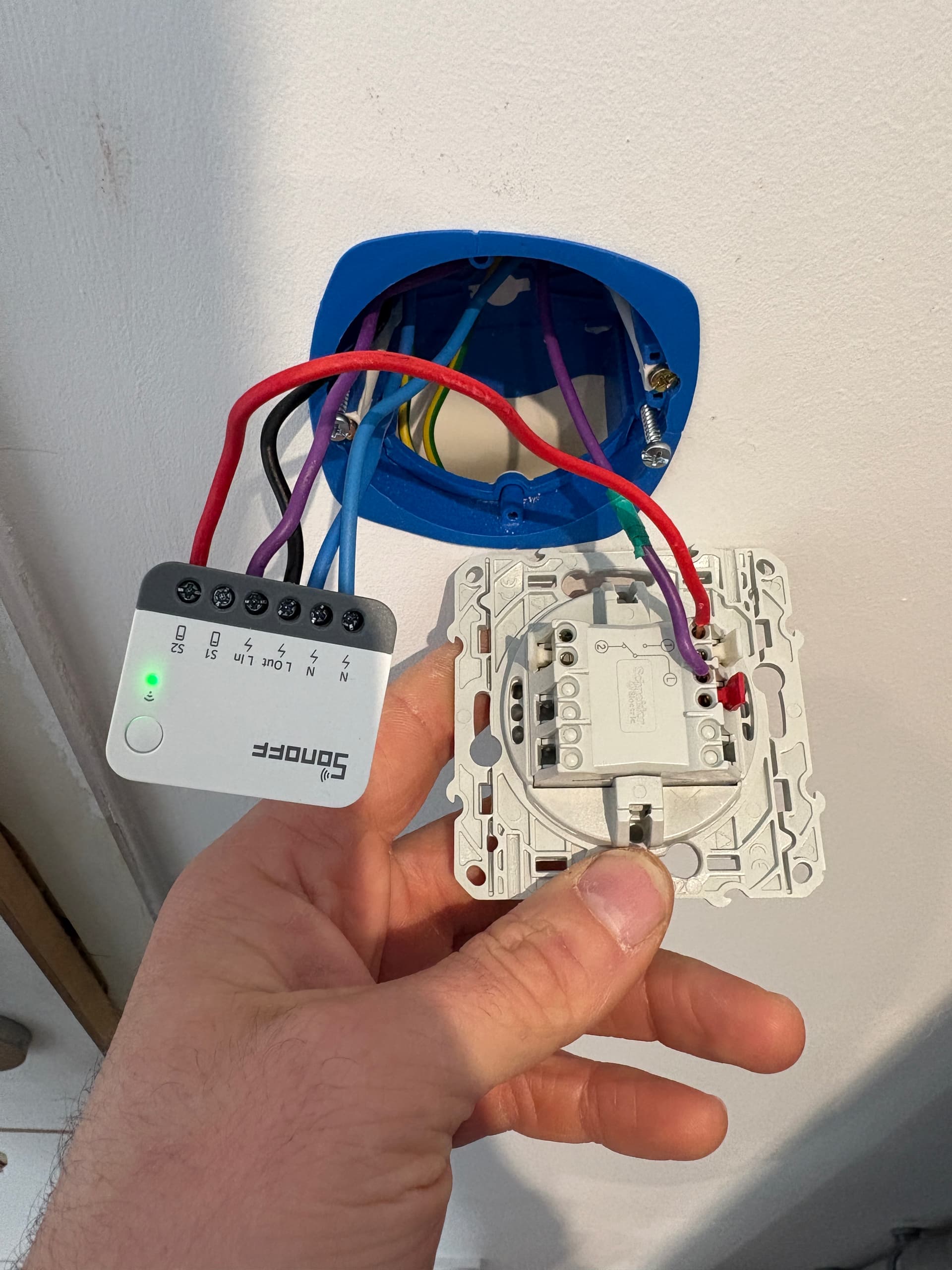 Le fil violet qui est sur le sonoff, tu le debranches et tu le mets sur la borne rouge de l’inter.