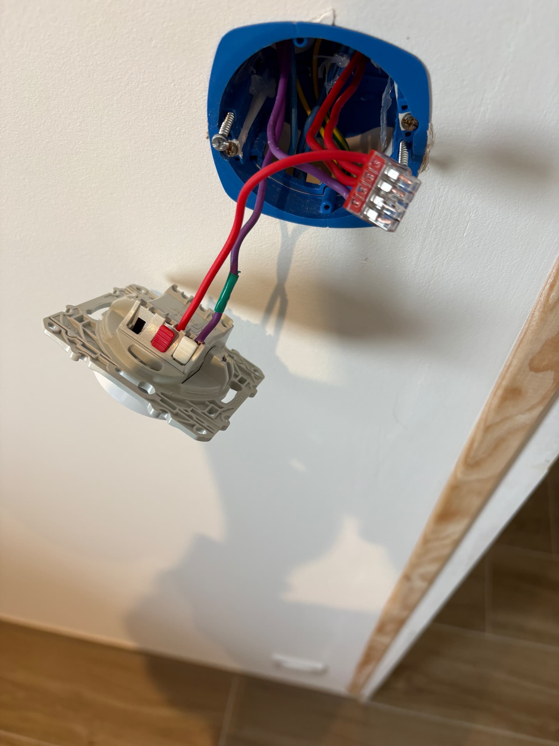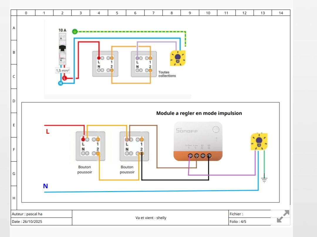 Le truc important c’est de bien identifier tes fils navettes (violet ici) pour que un devienne une phase et l’autre une commande.