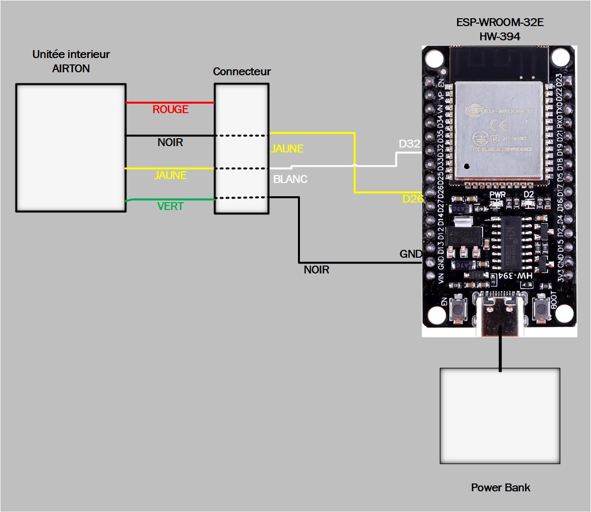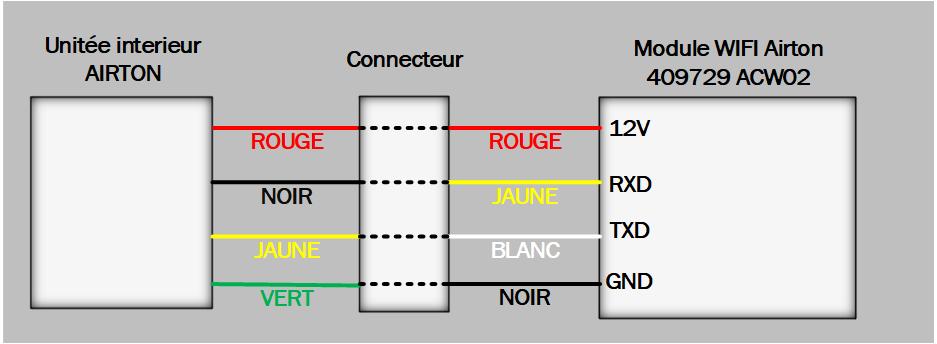 il a fallu déterminer le schéma de branchement du module wifi airton par rapport à l’unitée intérieur: