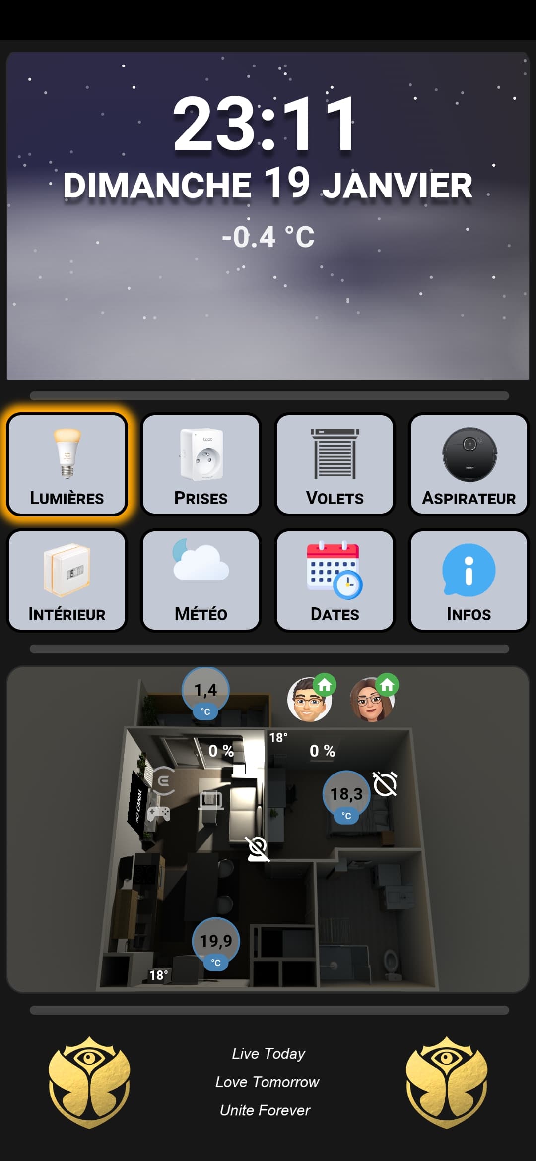 Depuis 1 an, je suis à fond sur la création d’un dashboard ergonomique pour mon smartphone ainsi que pour une tablette qui est au mur avec Fully Kiosk + WallPanel