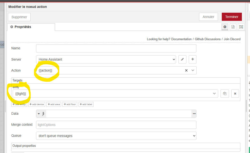 Je ne vais pas entrer dans les détails mais j’utilise un node ‘function’ dans lequel je fais choisir depuis une liste d’entité une lumière au hazard: