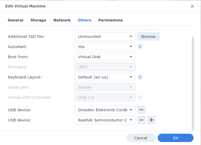 J’ai une ConbeeII sur un NAS DS918+ qui tourne avec DSM 7.2.2-72803. Effectivement les appareils USB qui ne sont pas officiellement supportés doivent avoir leur pilote chargé pour fonctionner… mais ce n’est pas le cas dans une VM!