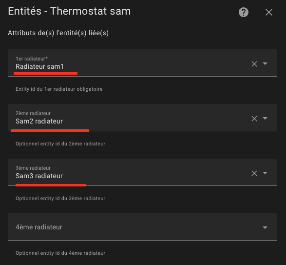 Le 3. est dépendant des équipements controlés par le VTherm et ne peut donc pas être centralisée. Si ton VTherm controle 5000 W de radiateur (avec un ou plusieurs radiateurs) tu dois mettre 5000. Le même VTherm peut controler jusqu’à 4 radiateurs. Exemple chez moi, un VTherm controle 3 radiateurs: