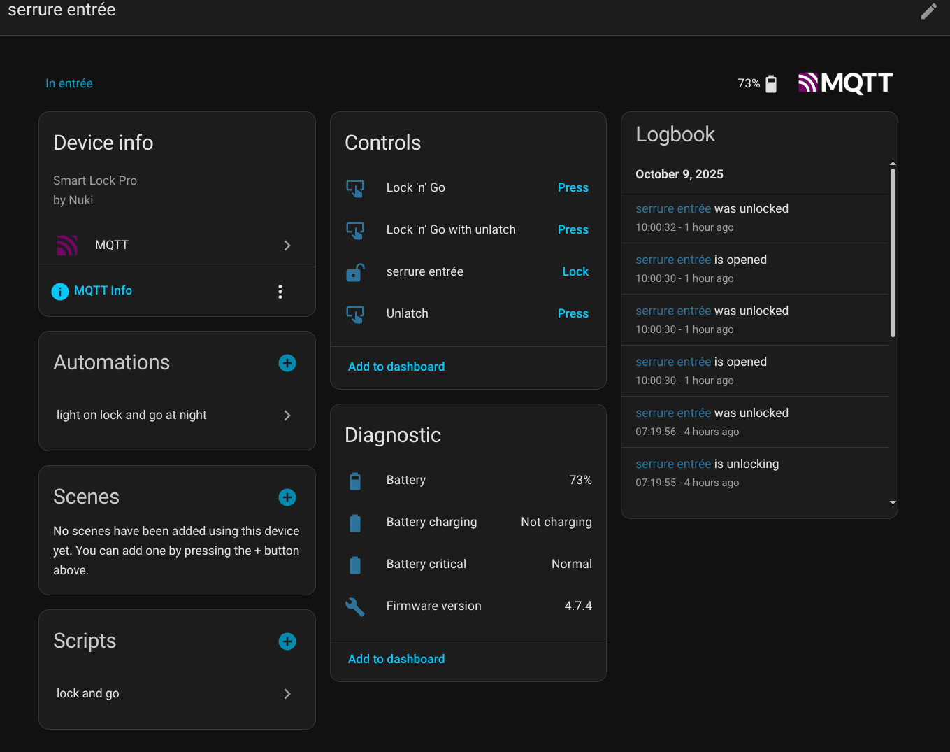 Sinon pour ceux qui possèdent cette serrure, savez-vous si il est possible de générer les codes d’accès temporaire comme on peut le faire depuis l’application Nuki mais depuis HA ?