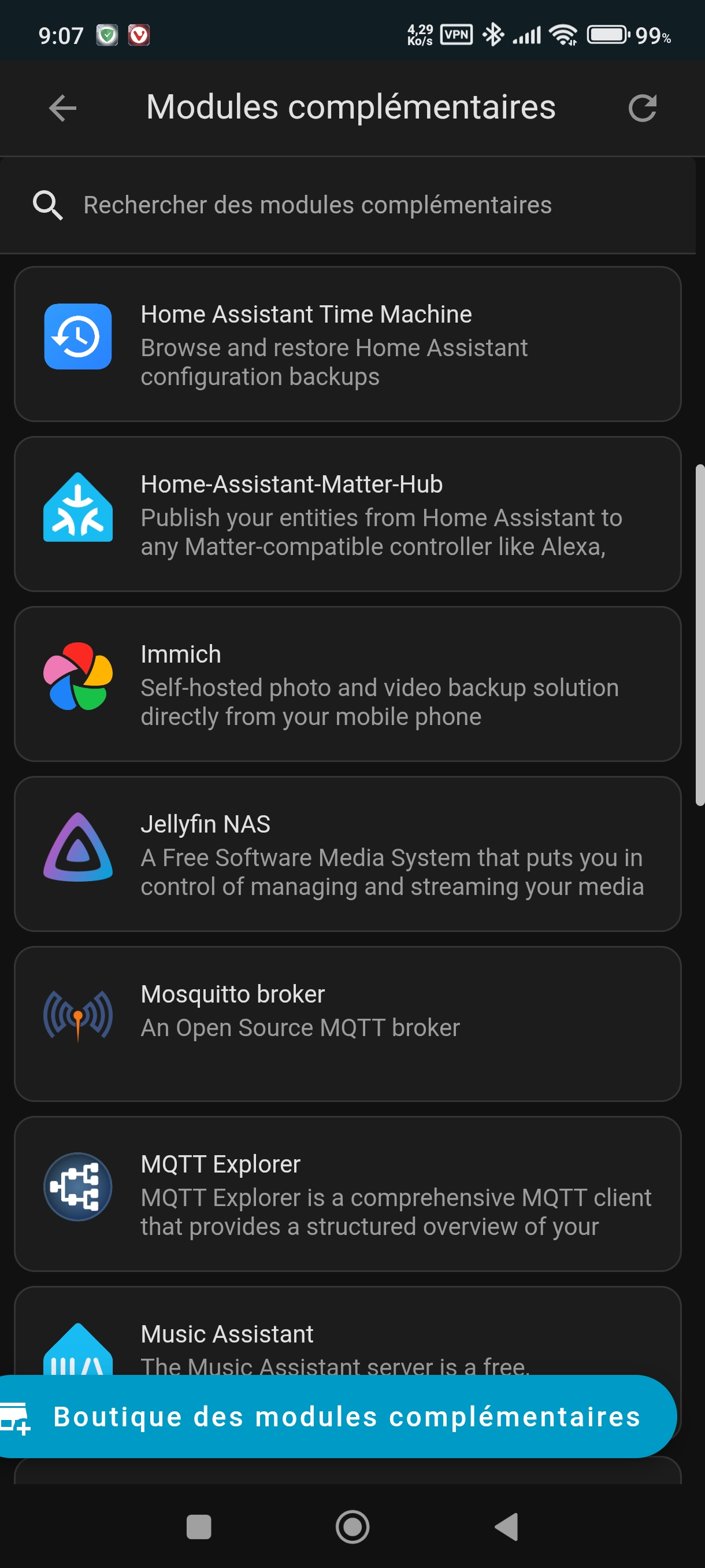 Bon j’ai pu remettre une vieille sauvegarde car la dernière était corrompu. J’ai laissé le SSD branché pendant toutes les manipulations. J’ai fais les moses à jour des modules. Enfin home assistant est fonctionnel et j’ai l’impression qu’il tourne sur le SSD. Je l’avais débranché et HA ne fonctionnait plus et voici un screen ou on voit le stockage restant de plus de 100gb.