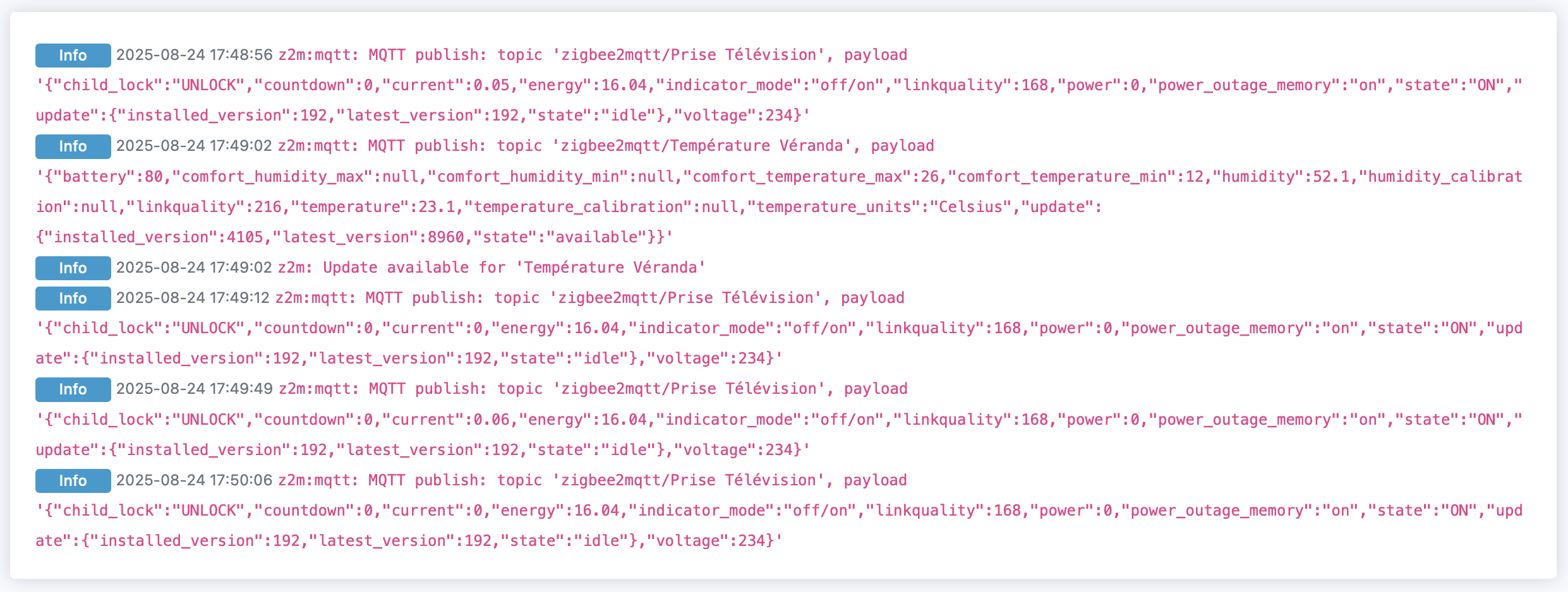 1 Les entités disparaissent mystèrieusement… Je suis connecté par Zigbee2MQTT. Sur mes scénario, je découvre que les entités n’existent plus. Il me faut donc les réinitialiser pour que HA les réintègre dans le systèmeème et ce, par le biais de ZBG2MQTT.