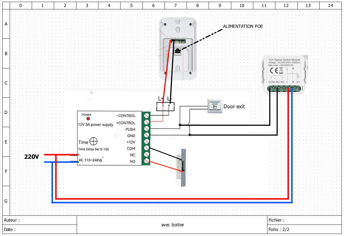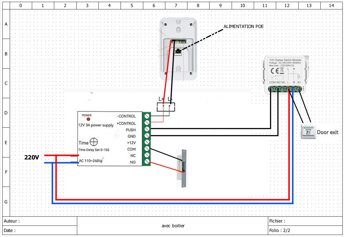 Effectivement je ne vais pas y couper pour le boitier complémentaire (dommage quand même d’avoir retirer l’Exit dans cette version du portier par rapport au précédent). L’avantage est que je vais quand même pouvoir retirer le transfo 12V 3A volumineux.