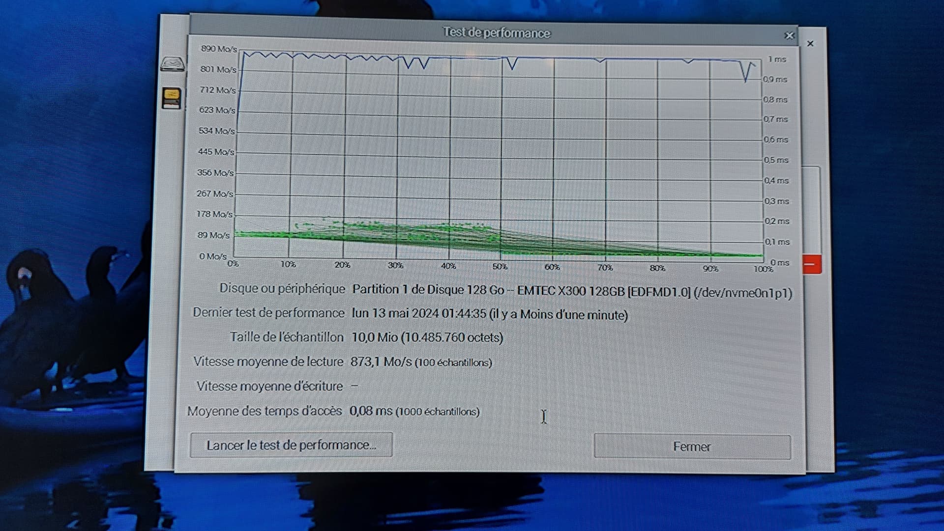 Et voilà le résultat du test que j’ai fait après overclock, je n’ai aucune différence en moyenne de temps d’accès, je ne sais pas si ça doit jouer…