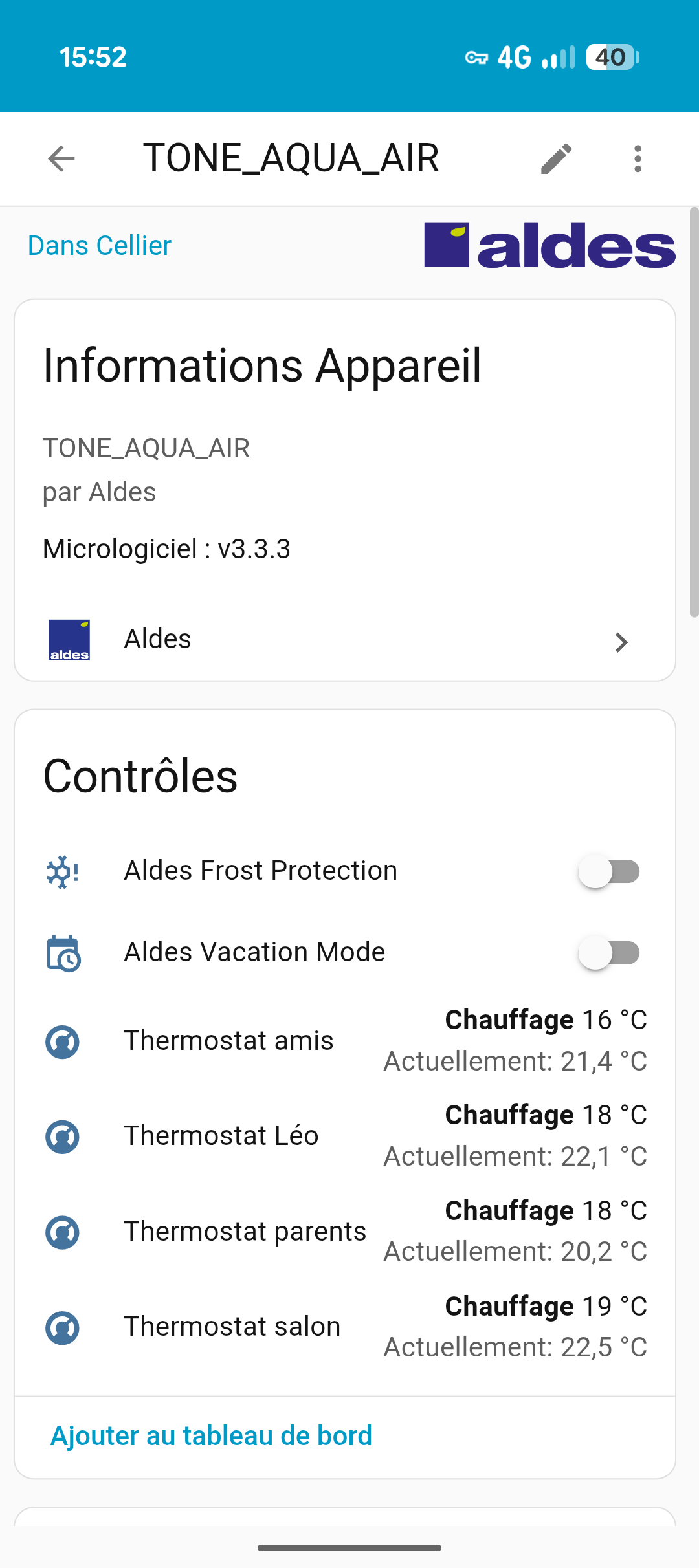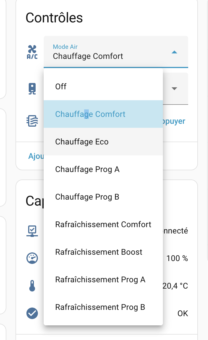 Salut, pour mettre à off le thermostat seulement via l’API d’aldes ce n’est pas possible, pourtant c’est avec le modbus avec la température à 0 (j’ai fais un essaie il se passe rien du coup à 0 avec l’API).