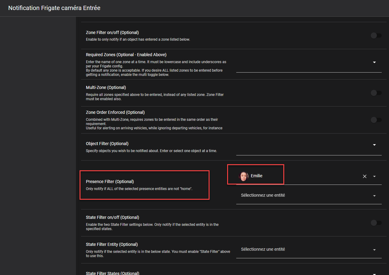 Depuis que j’ai utilisé les filtres dans l’automatisation de mes notifications Frigate, je ne reçois plus rien.