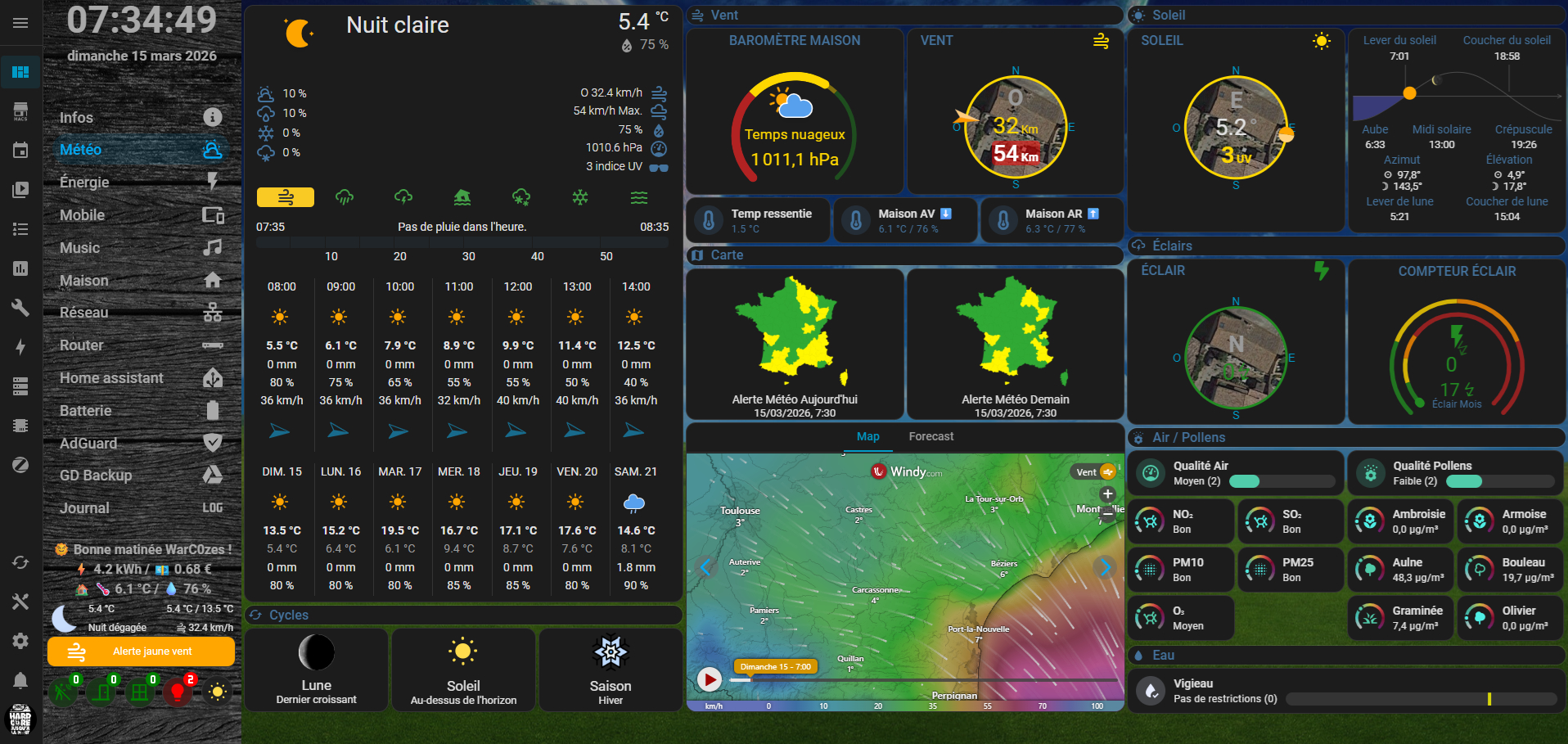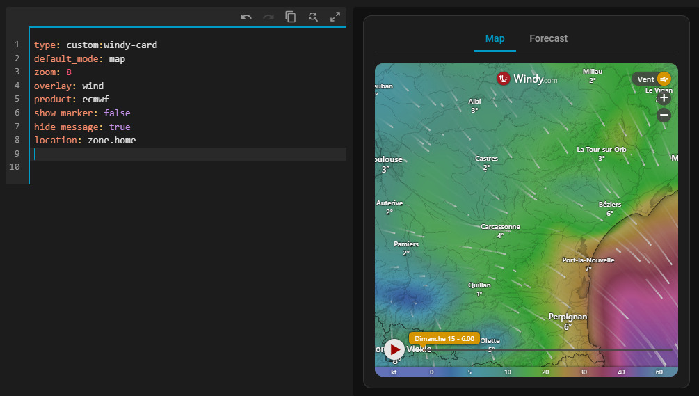 Pour ceux qui, comme moi, utilisaient jusqu’ici un iframe pour afficher Windy dans Home Assistant, je voulais partager une alternative beaucoup plus élégante : lovelace-windy-card.
