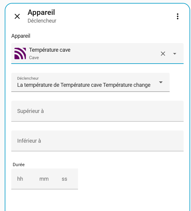 En revanche, je peux le sélectionner dans les conditions « Et si » par « Lorsque la température change ».