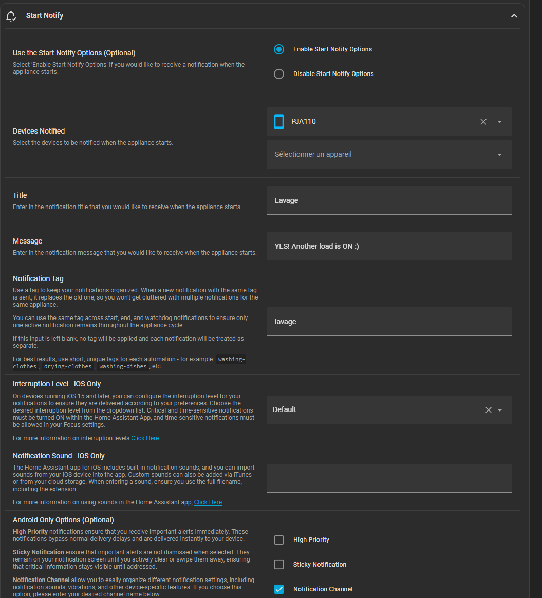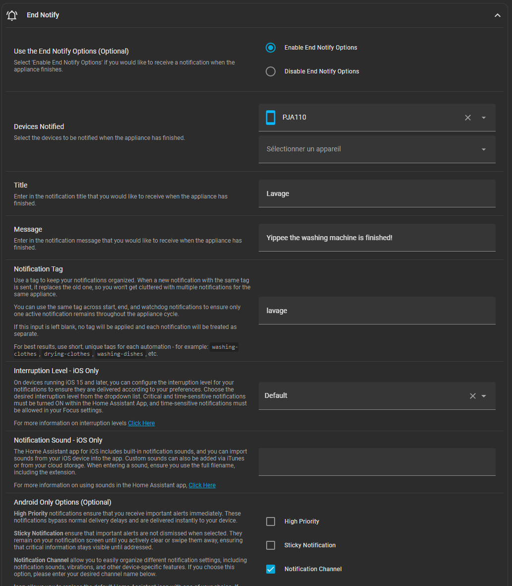 Perso je fais exactement pareil (sauf pour le booléen, moi c’est lavage en cour…) et pour le Lave vaisselle j’ai une tempo plus longue, je suis plus court sur le lave linge (mais l’automatisation est moins simple puisque je vérifie si le sèche linge a fini pour notifier…)