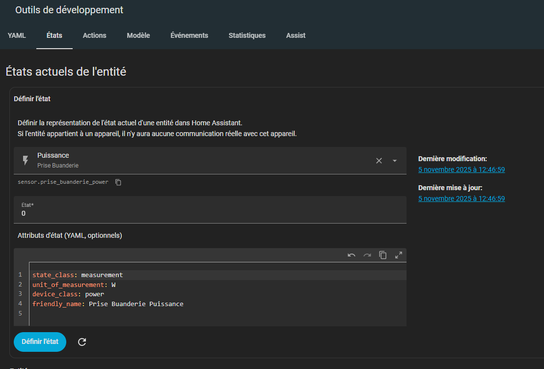 Pb, l’automatisation ne se déclenche jamais même si je ne laisse que le test puissance <10 pendant x temps, comme si cette entité, quand elle est à zéro, n’est jamais mise à jour, enfin je ne sais pas trop….