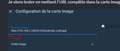 Du moins en local car l’url : http://192.168.2.240:8123/local/arlo_colis.jpg me donne :