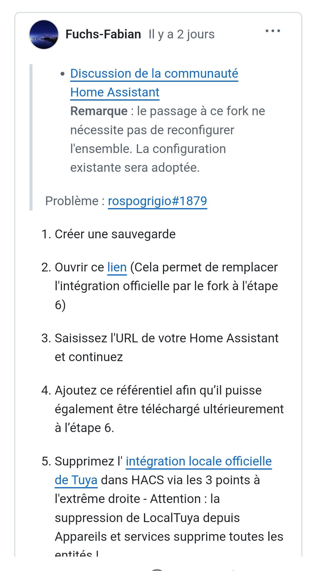 Depuis 2 jours, probablement depuis la maj 2025.1.0, je n’ai plus aucun contrôle sur mes lumières via « localtuya » ou « OpenRGB », et également d’autre module que ne fonctionne plus.