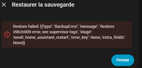 Lorsque je restaure la dernière version de 223.45MB j’obtiens le message d’erreur :