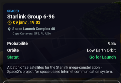 et 15 min (réglable) avant un launch