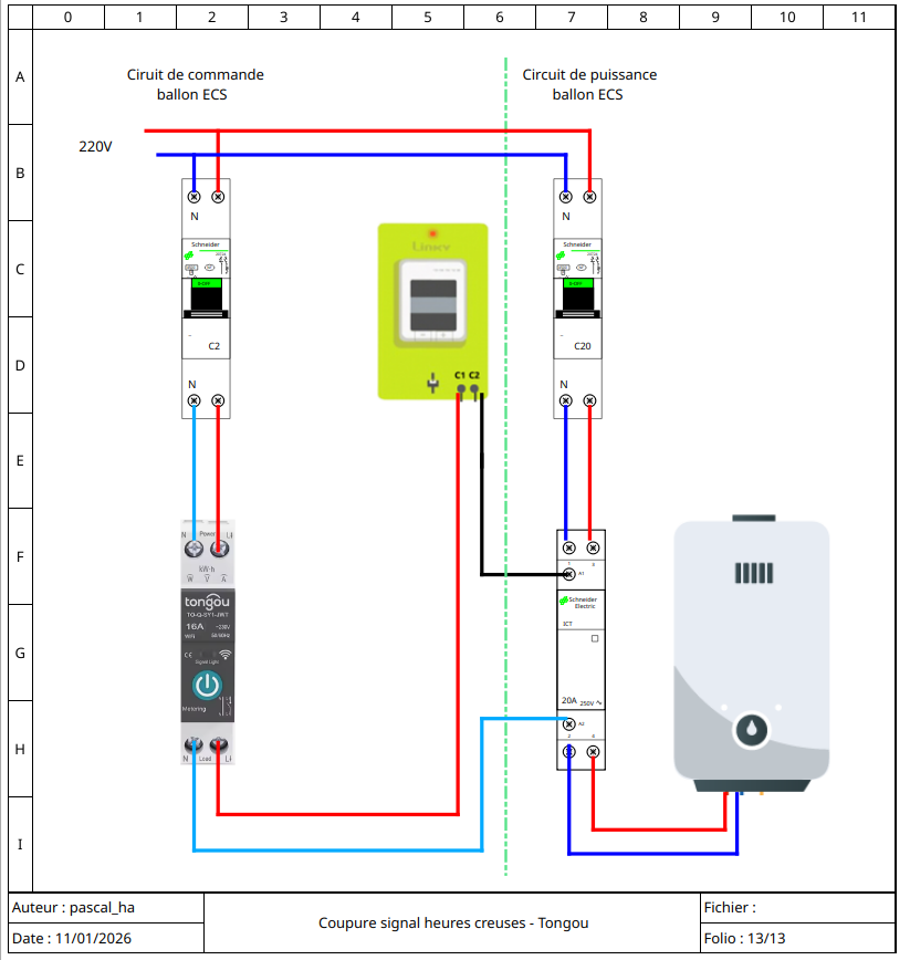Dit autrement : Si ce disjoncteur coupe l’arrivée du jus au ballon (remplacement du fusible 20A), est ce que, quand la ligne n’est plus alimentée, il peut y avoir dysfonctionnement du signal envoyé au contacteur jour/nuit ? Je pense que non, mais j’aimerai une confirmation par prudence.