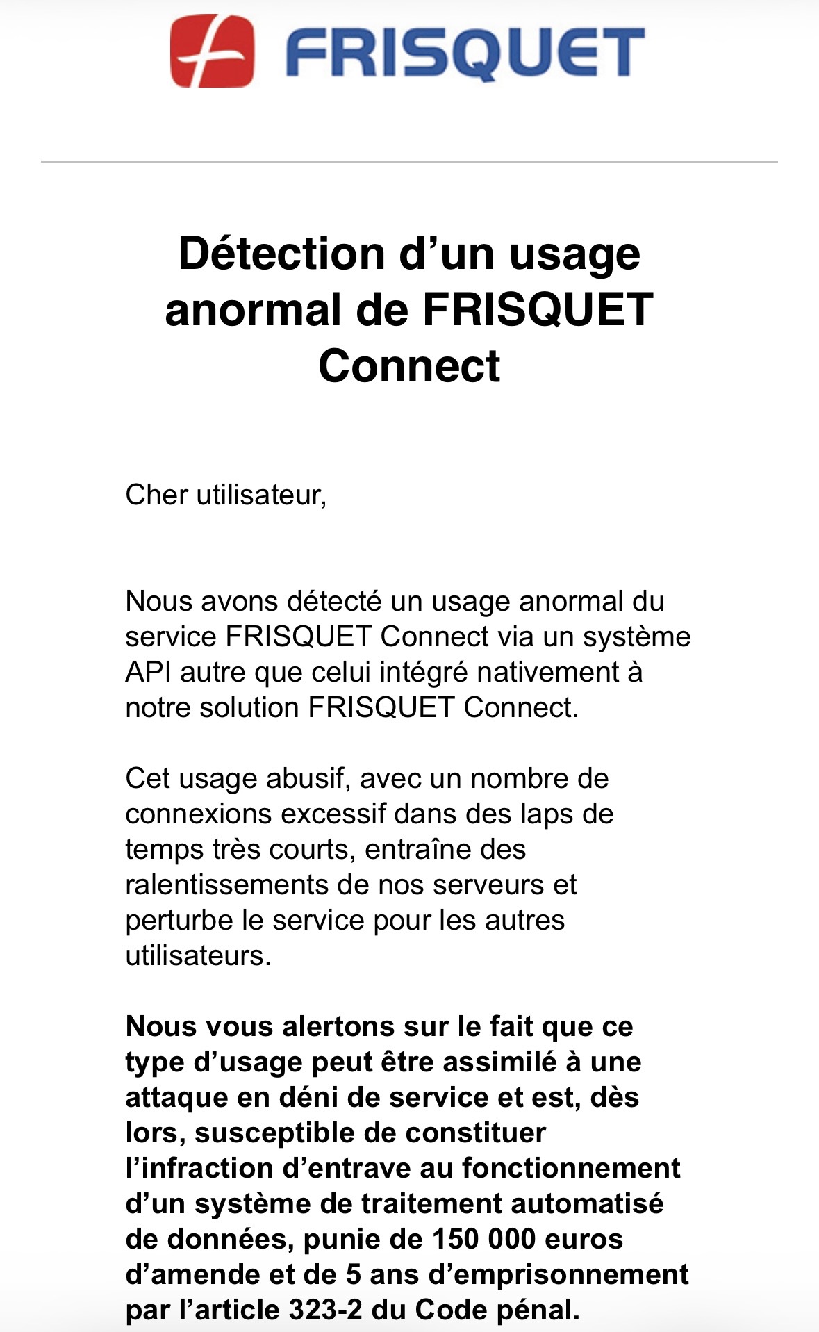 Moi aussi reçu le mail, je l’ai ai incendié, il est inacceptable de traiter les clients comme cela, avec menace de prison et amende.