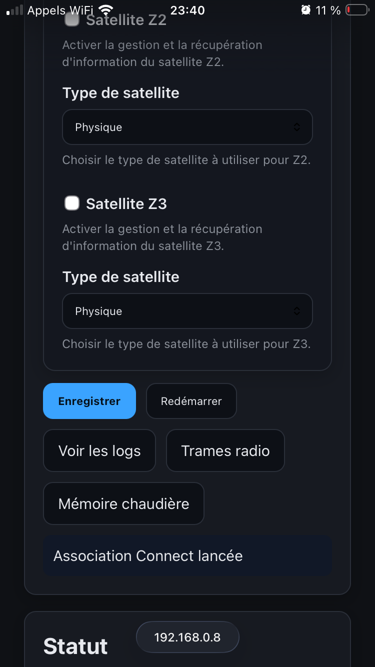 J’avais un satellite que j’ai dissocié de ma chaudière et j’ai tenté le remplacer par le heltec. Je passe la chaudière en mode appairage => tout va bien.