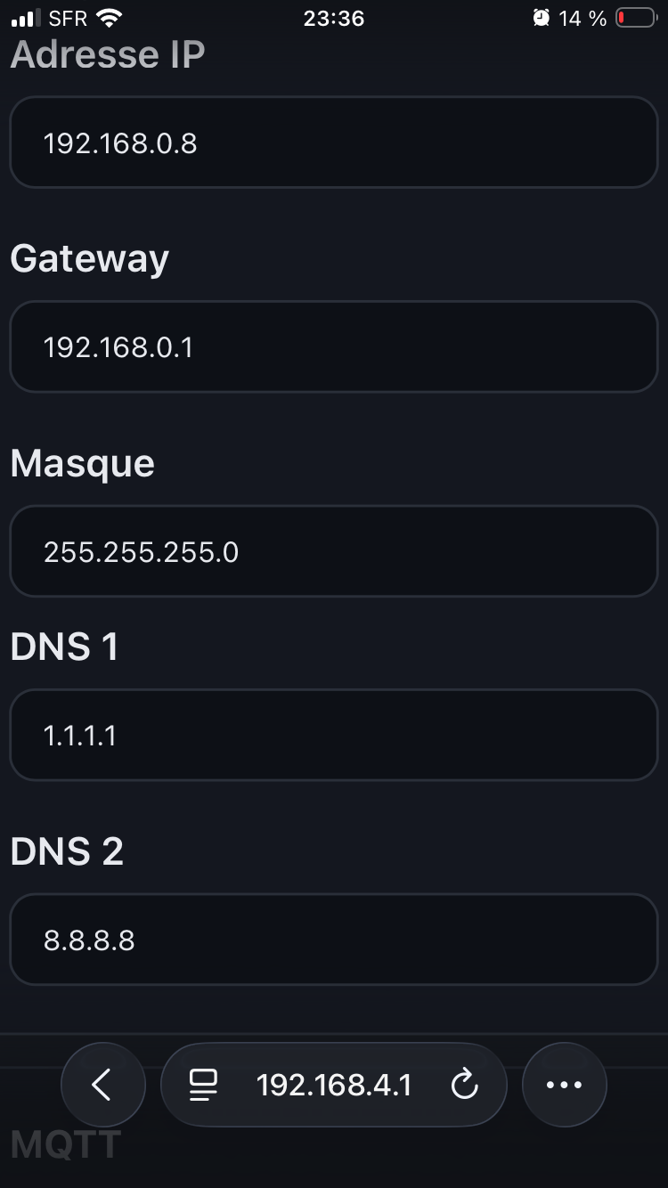 [INFO][1970-01-01 00:00:01] [MQTT] Initialisation du device MQTT.
